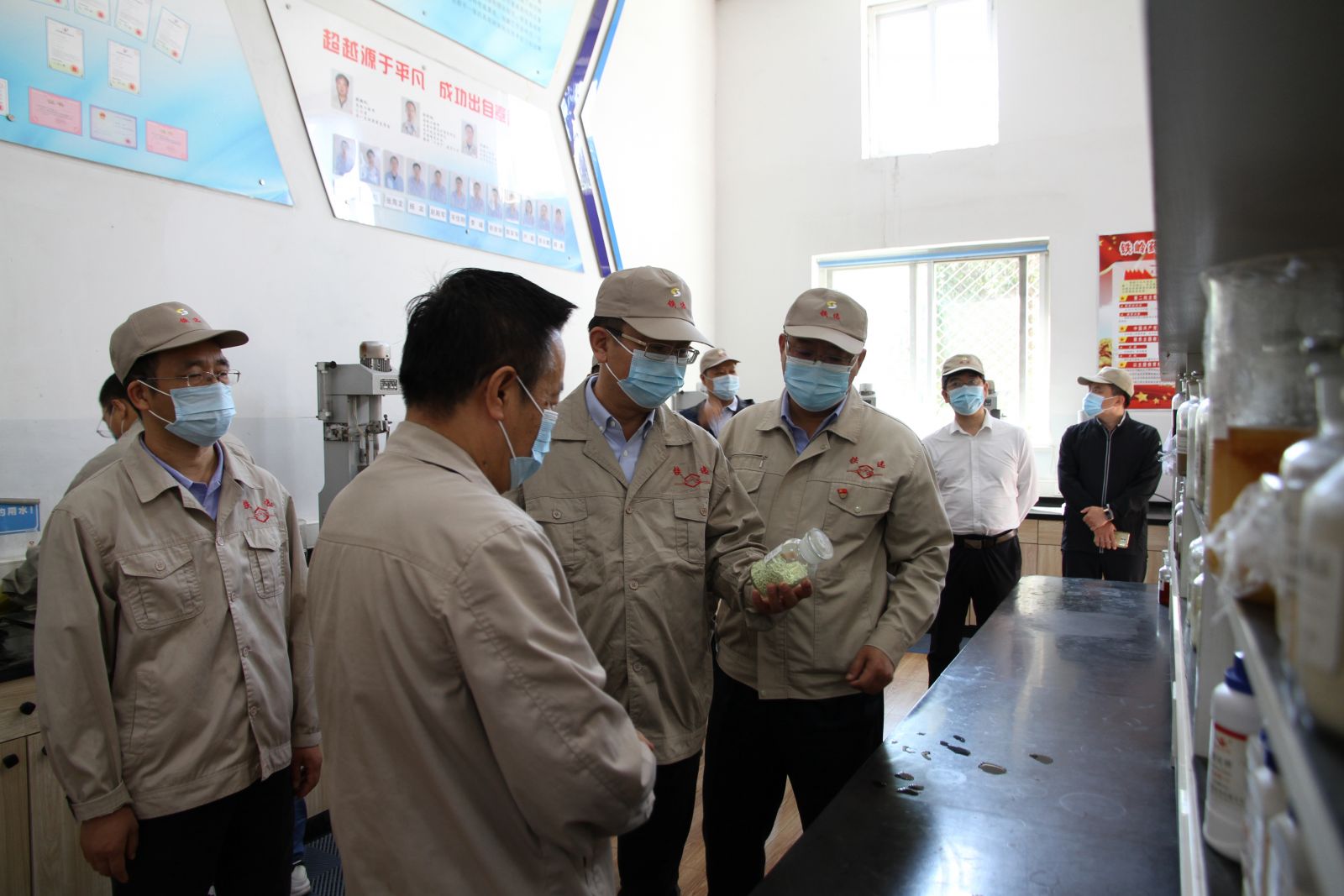 安宜總會計師一行深入鐵嶺藥劑生產車間、研發中心等地,實地調研鐵嶺藥劑科技創新工作,了解試驗研究裝備工藝和信息化水平及人才隊伍建設情況。現場調研后,召開了座談會。在聽取了中色沈礦總經理、黨委副書記左治興關于中色沈礦1-8月份生產經營情況、礦冶工程技術平臺進展情況、疫情防控、降本增效、安全環保、黨建等各項重點工作的匯報后,安宜總會計師指出,一是要不忘初心打造礦冶工程技術平臺,注重文化融合;二是要抓好常態化疫情防控和復工復產工作,沖刺四季度,努力實現全年目標;三是要按照“過緊日子”要求,降低成本,提質增效;四是要防范重大風險,做好法律訴訟案件;五是要抓好安全生產,守住底線。