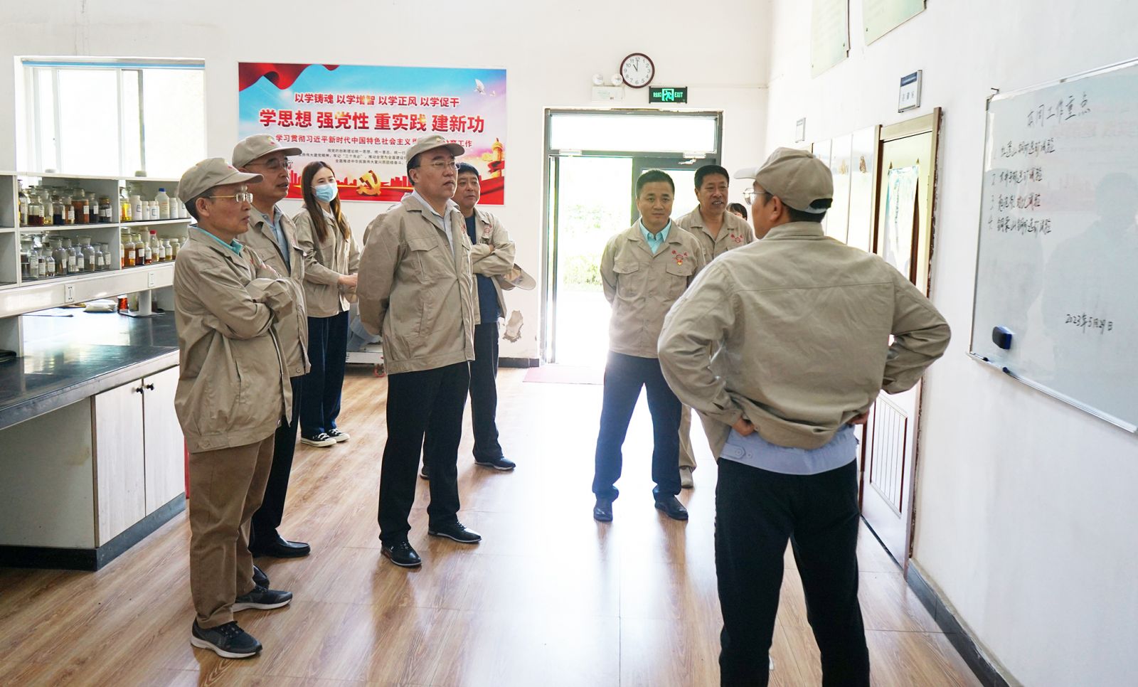 5月29日,中色沈礦黨委書記、董事長王鎖寬一行到鐵嶺藥劑開展調研,集團公司專職董事、主題教育第一巡回指導組組長吳禮杰共同前往調研。