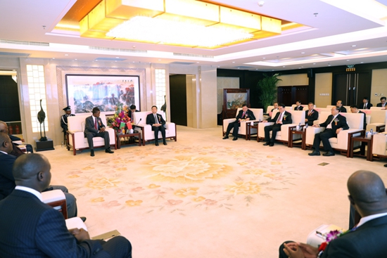 倫古總統(tǒng)與肖亞慶主任會(huì)見(jiàn)現(xiàn)場(chǎng)全景