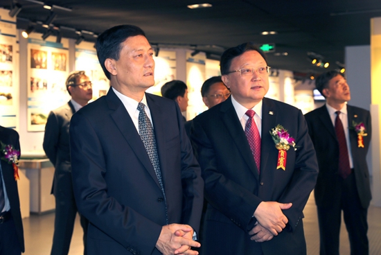 王彤宙董事長(zhǎng)等領(lǐng)導(dǎo)陪同肖亞慶主任參觀中國(guó)有色集團(tuán)展廳 |